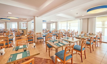 La cocina mediterránea deleita a los comensales en el restaurante frente a la playa. Una cafetería y un bar ofrecen lugares adicionales para saborear las comidas. El desayuno buffet empieza cada día.