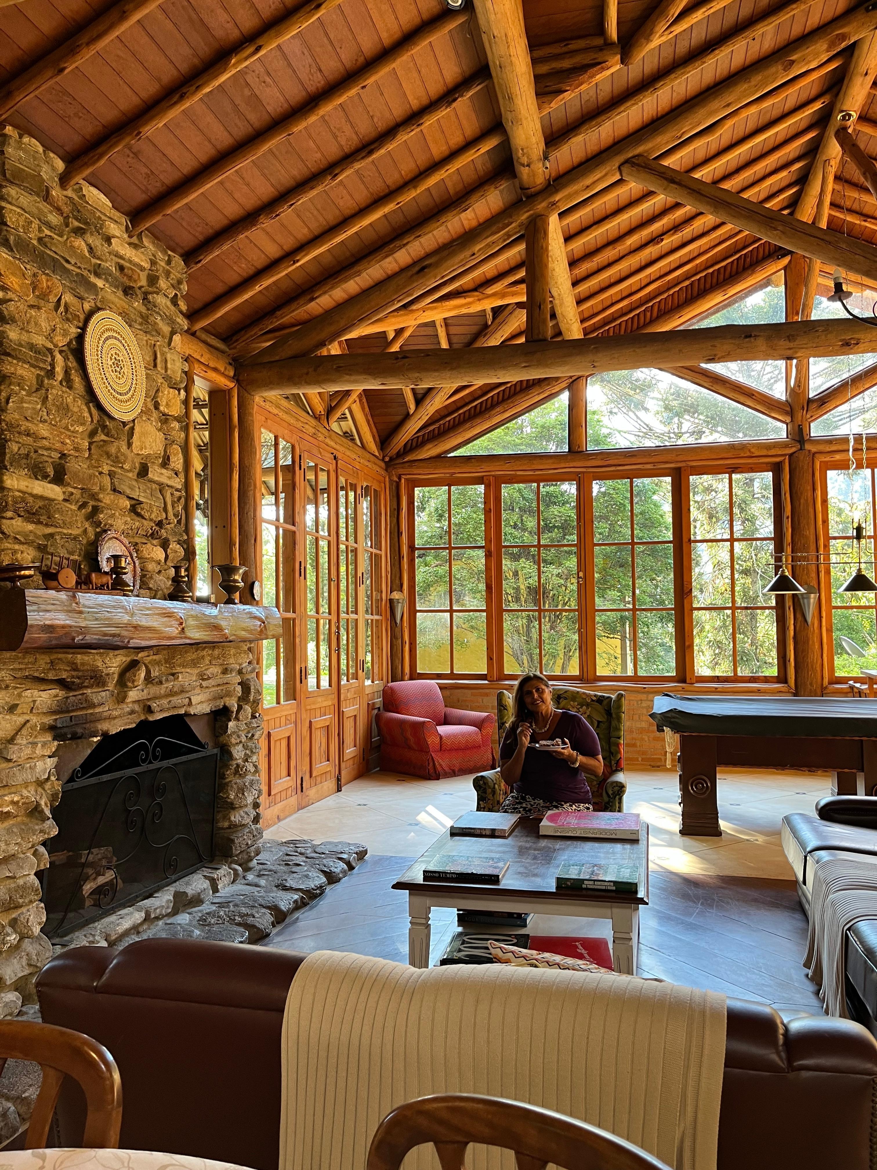 O espaço comum é o coração da pousada: uma lareira linda, sofás aconchegantes, mesa de bilhar, jogos e um café da tarde delicioso com bolos, biscoitos, chá e café a vontade. Não dá vontade de ir embora!