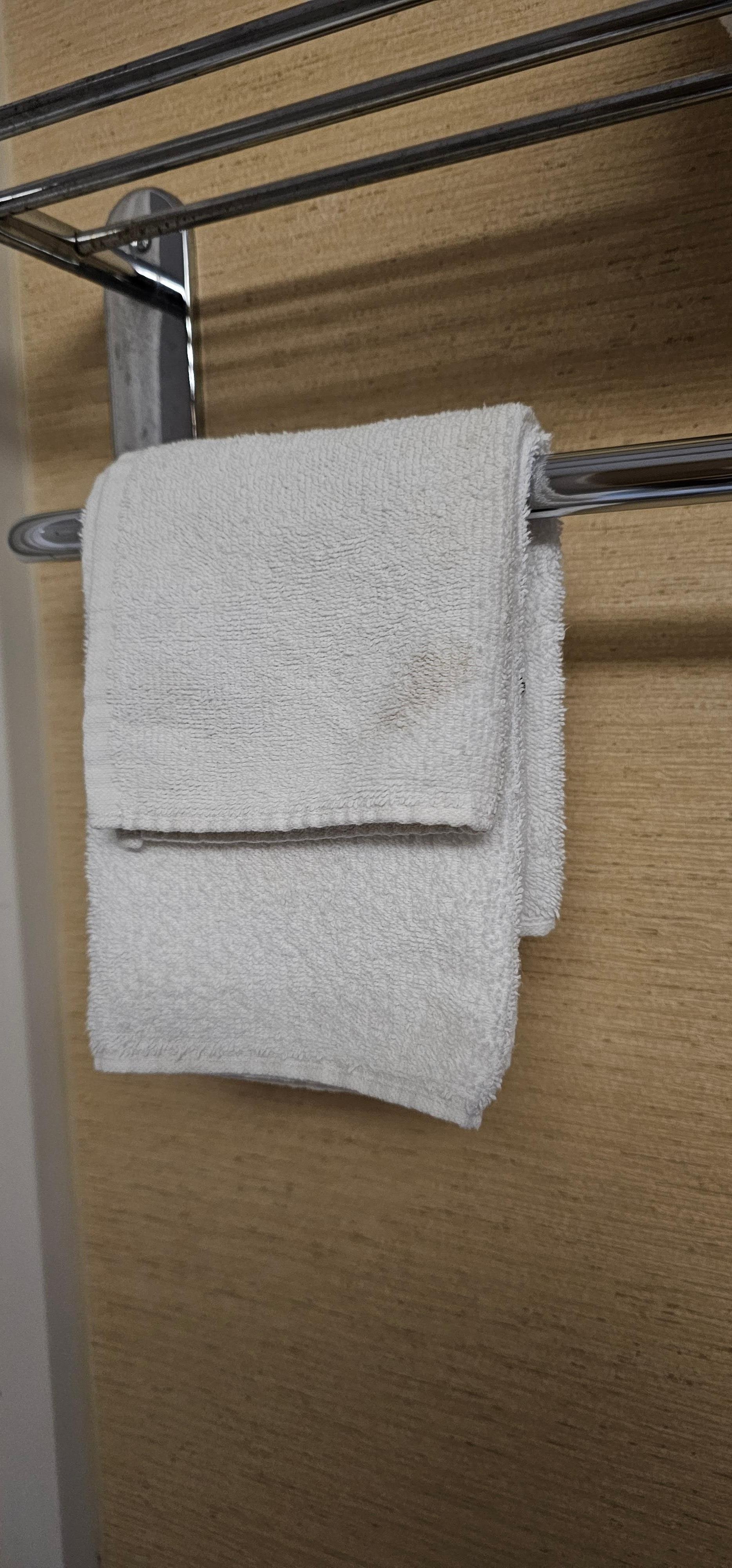 The room was either not cleaned at all before we checked in, or they just changed the sheets and called it a day. We found hair from potentially multiple other people all over the bathroom, and the towels were so dingy, we couldn’t tell if they’d been washed or not, so we opted to air dry. We didn’t feel comfortable taking a shower in the room, which must have been the right decision, as I heard another guest checking out tell the concierge that their tub wouldn’t drain.