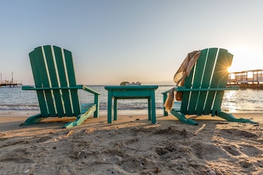 Una playa privada de arena ofrece la escapada perfecta en este hotel. Tumbonas, sombrillas y cabañas invitan a la relajación, mientras un chiringuito sirve refrescos.