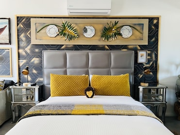 Relájate en sábanas de algodón egipcio con colchones de espuma viscoelástica y edredones de plumón. La cuidada decoración y los cabezales de ducha de hidromasaje elevan esta estancia.